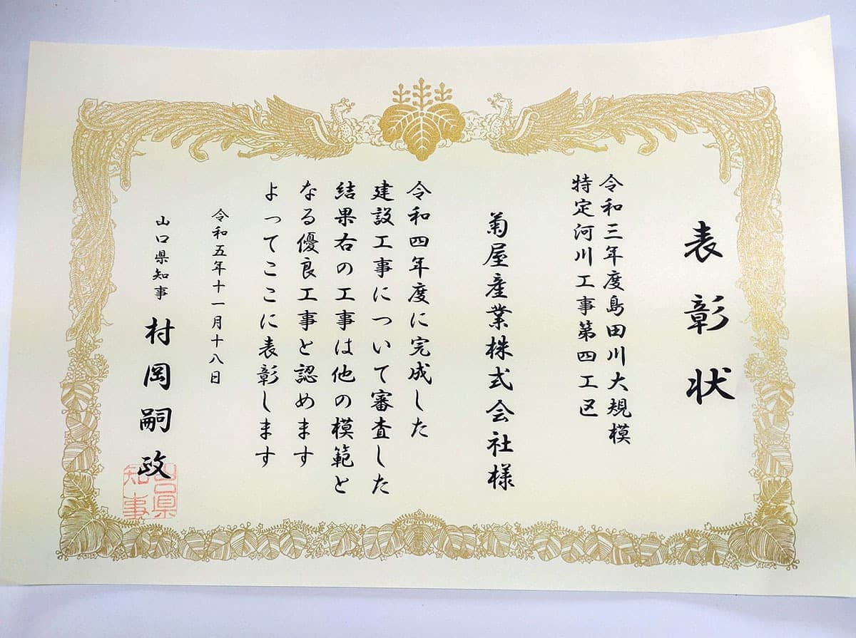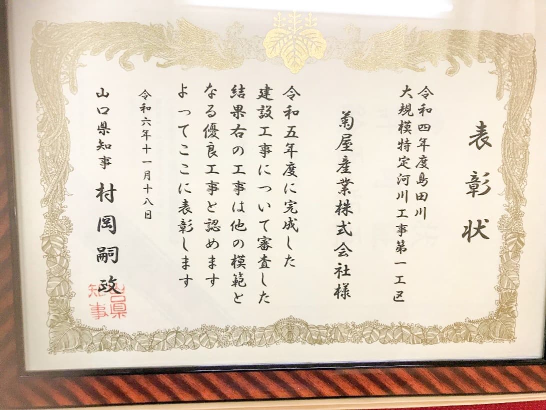 山口県優良建設工事表彰されました。